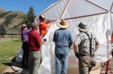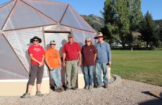 This geodome was funded by the Wyoming Department of Agriculture as part of the USDA Specialty Crop Block Grant. Ted Craig, who administers the grant, coordinated the build along with Coleman Griffith, Balls, Mitchell, Shane Robinson, Shar Perry, county commissioner Bob King, and community volunteers Ted Carlisle and Jim and Susan Heartline.